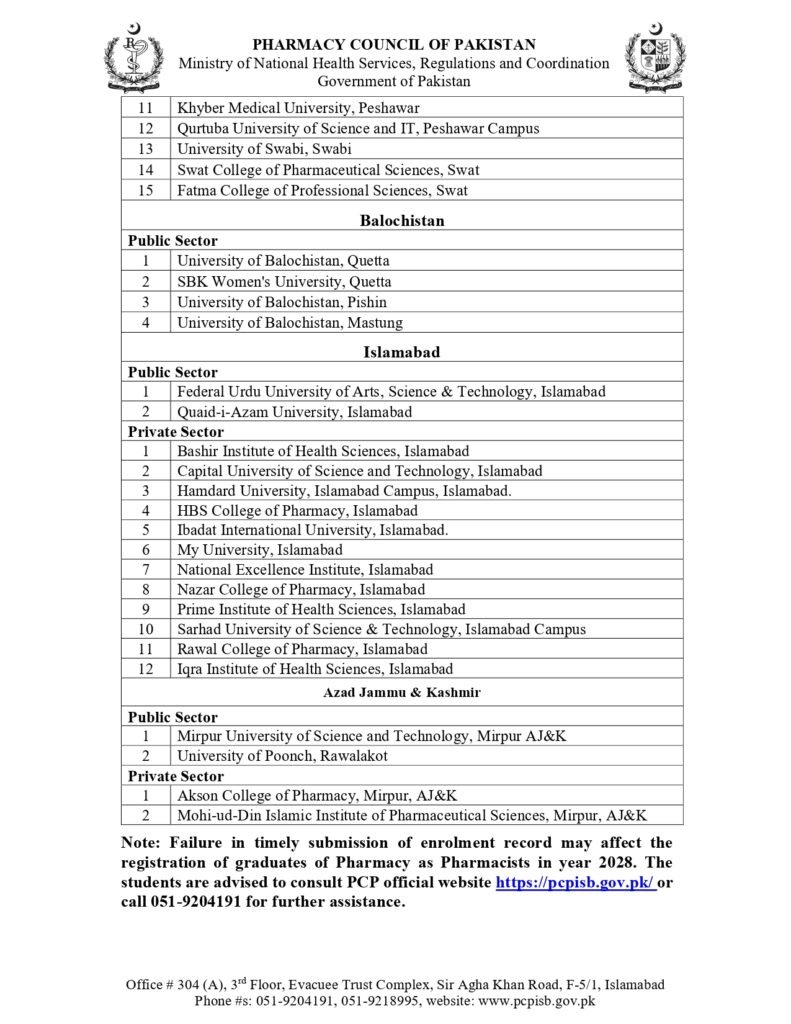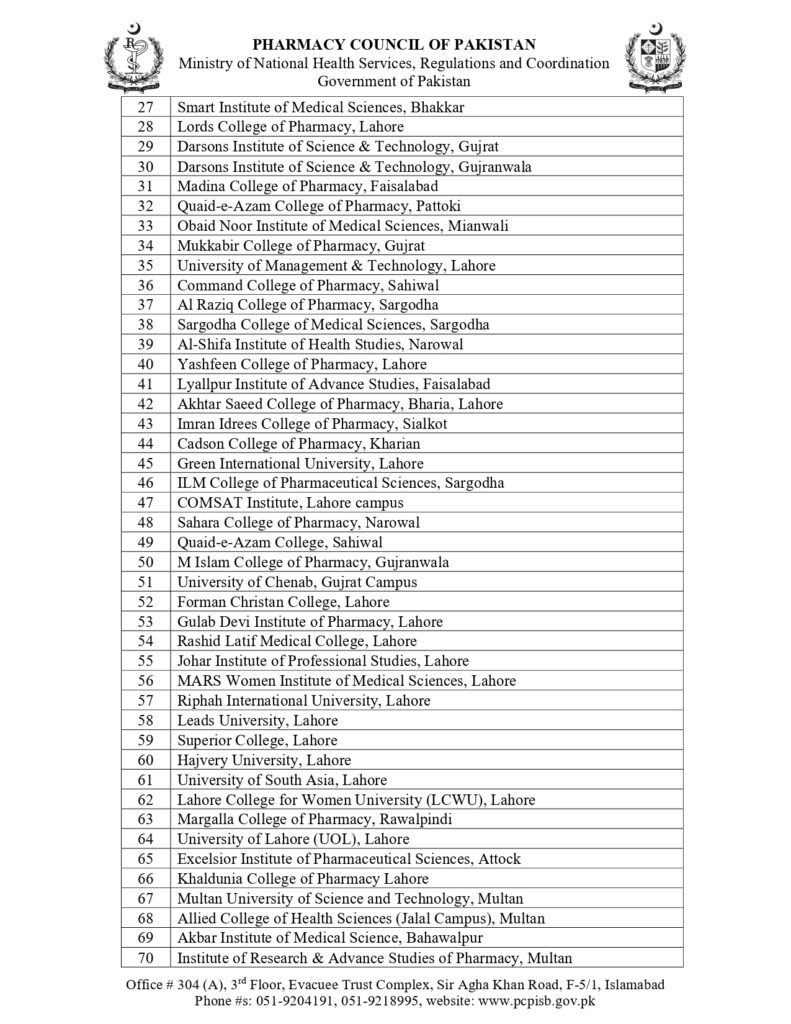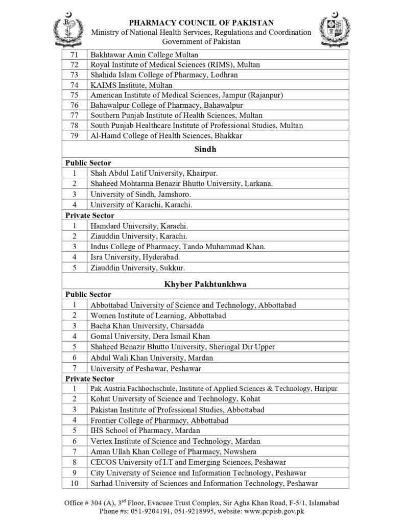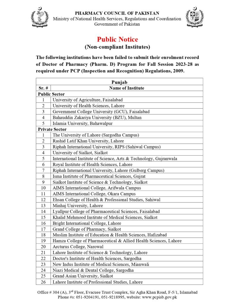 of Doctor of Pharmacy (Pharm. D) Program for Fall Session 2023-28 as